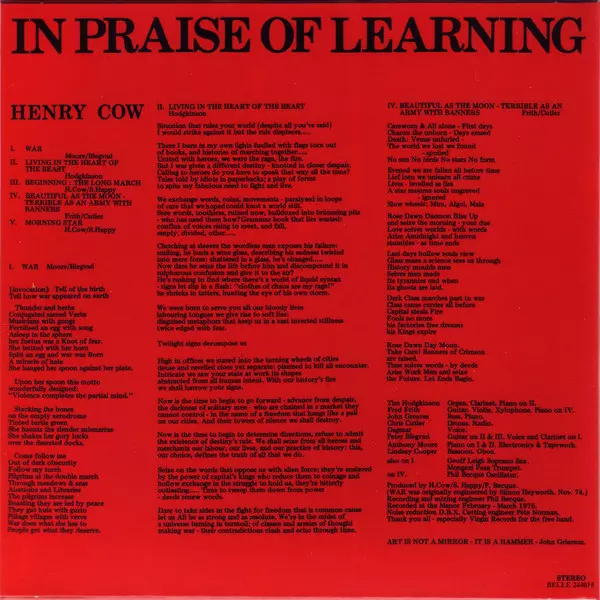 | Művész | Henry Cow | Slapp Happy |