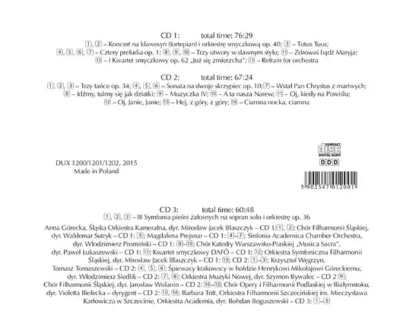 Henryk Górecki: To, Co Najpiękniejsze (The Very Best Of Górecki) DLX A lemezen lévő változat 3CD - deluxe kiadás. Ez a különleges kiadás - Lengyelország a kiadó által DUX Recording Producers év 10. június 2016. Album műfajok között Klasszikus zene és Contemporary classical.