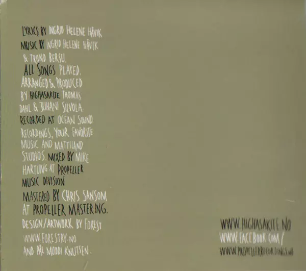 | Kiadó | Highasakite Music | Propeller Recordings | InKind Music |
