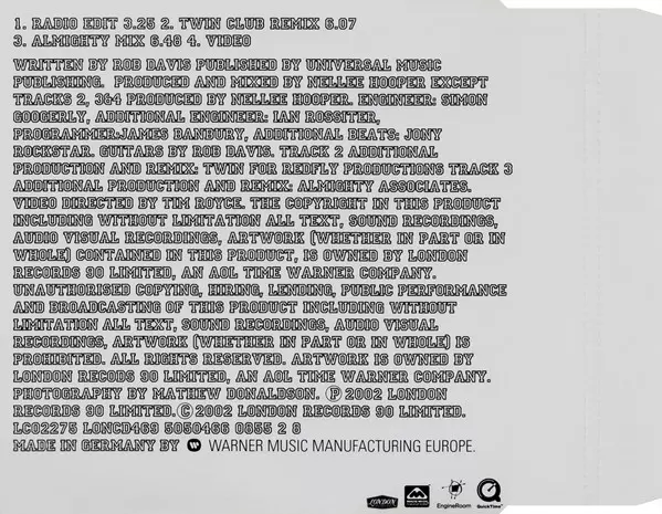 | További információk | Enhanced CD — Europe 2003 (London Records) |