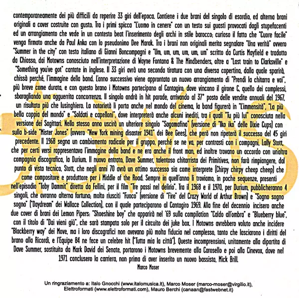 The Motowns were a British beat music group during the second half of the sixties known in Italy as part of the so-called British invasion. The group was founded in Liverpool by guitarist Douglas Albert Meakin , a school friends of Beatles' drummer Ringo Starr, who in the early six...