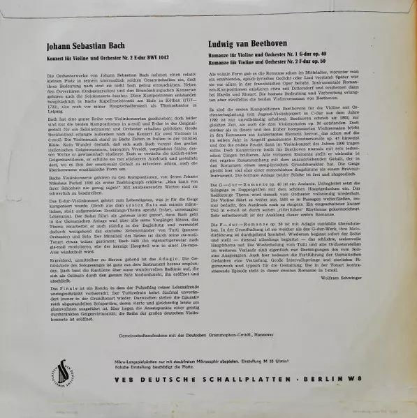 | Cím | Konzert Für Violine Und Orchester E-Dur (BWV 1042) / Romanze G-dur Op. 40 / Romanze F-dur Op. 50 |