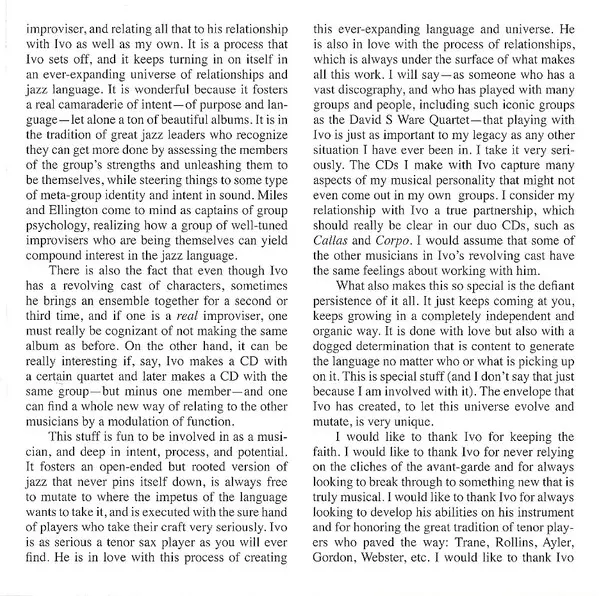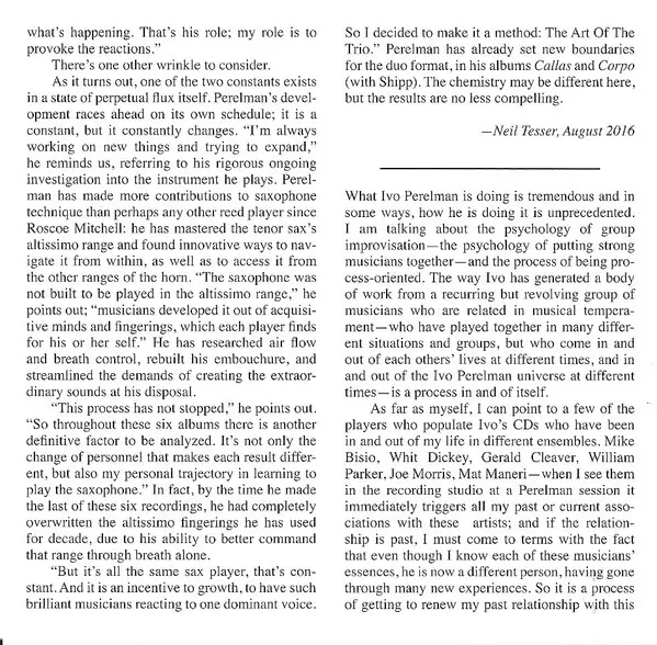 | Művész | Matthew Shipp | Ivo Perelman | Gerald Cleaver |