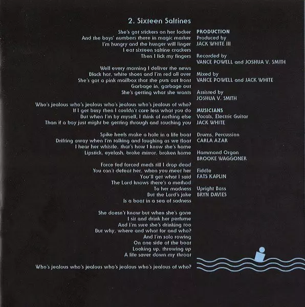 Backing Vocals Karen Elson, Laura Matula, Ruby Amanfu | Double Bass [Upright Bass] Bryn Davies | Drums Carla Azar | Electric Guitar Olivia Jean | Electric Piano [Rhodes] Brooke Waggoner | Fiddle Fats Kaplin, Lillie Mae Rische | Mixed By Jack White (2), Vance Powell | Producer Jack White (2) | Recorded By Vance Powell | Recorded By [Assisted By], Mixed By [Assisted By] Joshua V. Smith | Vocals, Piano, Electric Guitar [Electric Guitar Solo] Jack White (2)