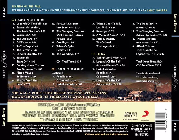 | Cím | Legends Of The Fall (Expanded Original Motion Picture Soundtrack) LTD |