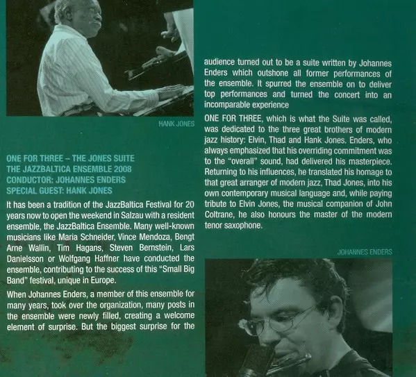 | Cím | One For Three-The Jones Suite-Live at Jazzbaltica Salzau |
