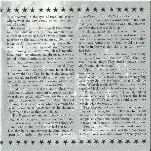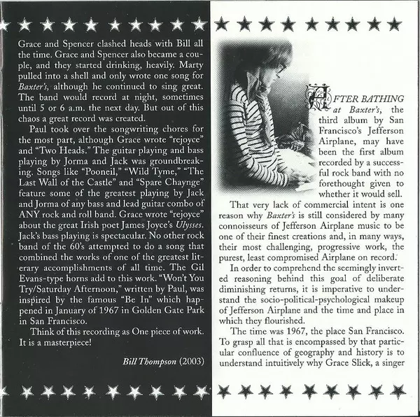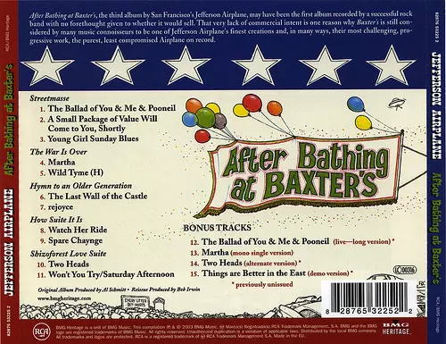 "After Bathing at Baxter's" is the third album by San Francisco rock band Jefferson Airplane. Jefferson Airplane started 1967 with Surrealistic Pillow and ended it with After Bathing at Baxter's, and what a difference ten months made. The album was one of the purest psychedelic albums in rock, and it was also much bolder. The album saw the band ...