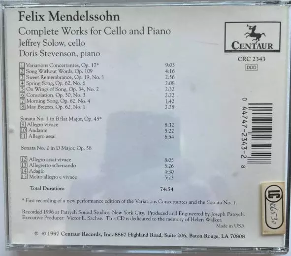 | Cím | Felix Mendelssohn: Complete Works For Cello And Piano |