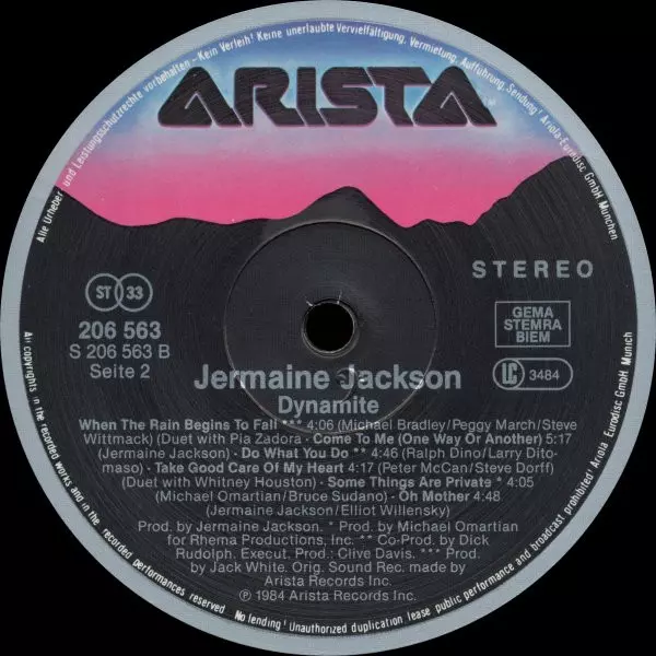 Jermaine Jackson: Dynamite A lemezen lévő változat bakelitlemez LP - standard kiadás. Ez a különleges kiadás - Európa a kiadó által Arista napján jelent meg 1984. Album műfajok között Pop, Elektronikus zene, Funk / Soul, Ballada, Synth-Pop és Disco.