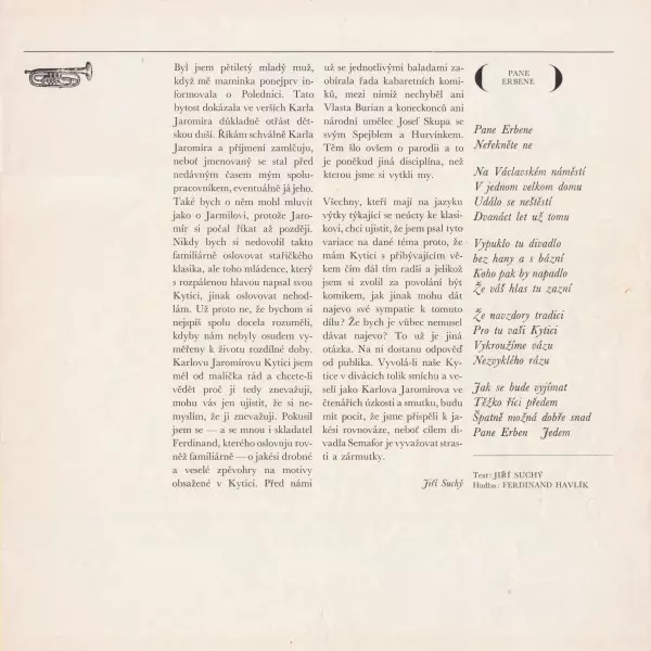 | Művész | Jiří Suchý | Karel Jaromír Erben | Ferdinand Havlík |