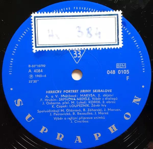 | További információk | Gramofonový Klub Club Edition • 1967 original mono, spiral-bound cover |
