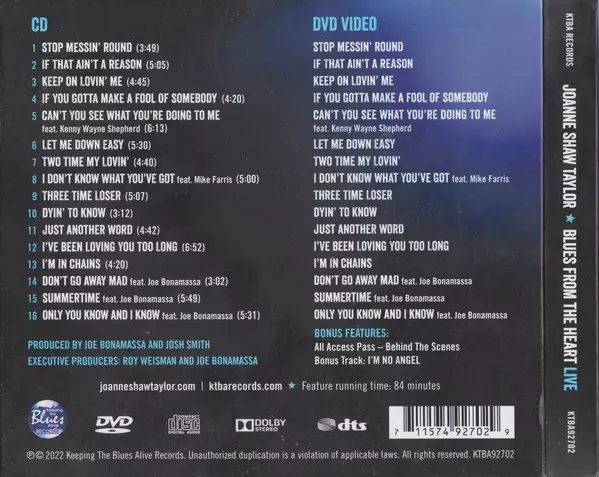 Joanne Shaw Taylor: Blues From The Heart - Live A lemezen lévő változat CD/DVD - standard kiadás. Ez a különleges kiadás - Világszerte a kiadó által Keeping The Blues Alive Records év 24. június 2022. Album műfajok között Rock, Blues, Blues-Rock, Electric Blues és Chicago Blues.