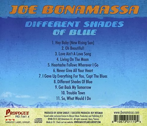 Joe Bonamassa: Different Shades Of Blue A lemezen lévő változat CD - standard kiadás. Ez a különleges kiadás - Európa a kiadó által Provogue a következőkkel együttműködve Mascot Label Group év 26. szeptember 2014.