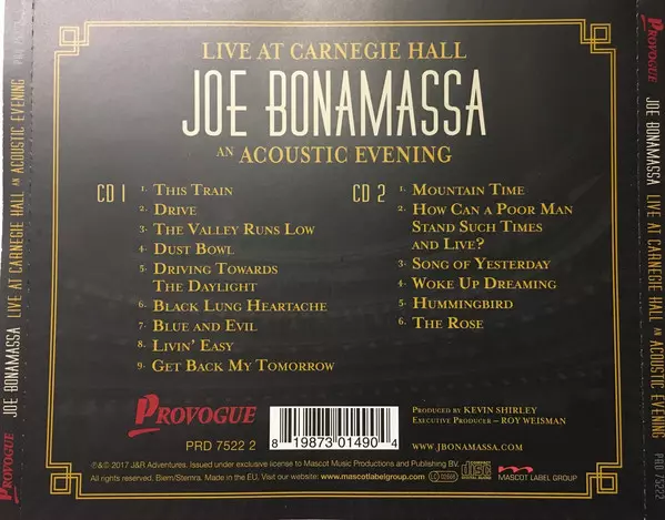Two special nights with Joe Bonamassa Blues rocker and guitar virtuoso Joe Bonamassa is releasing a new live album in 2017 called "Live At Carnegie Hall - An Acoustic Evening". In addition, the recording is also available as a concert film on a double DVD and Blu-ray disc. Just last year, Bonamassa recalled some of his musical heroes on "Live at...