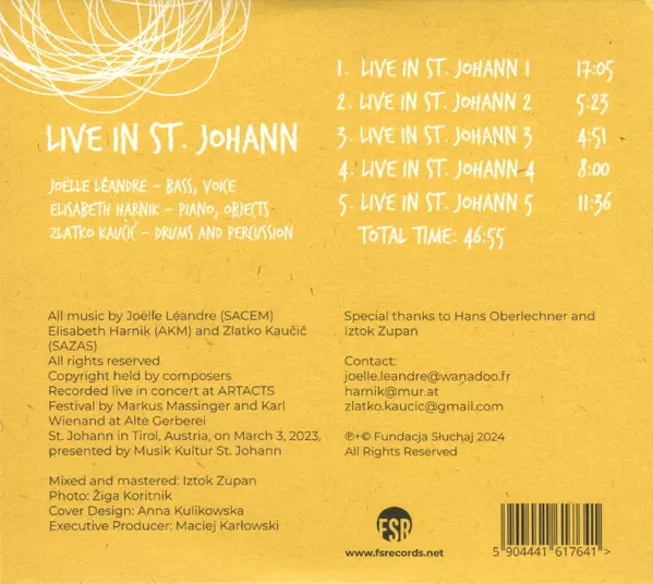| Művész | Joëlle Léandre | Elisabeth Harnik | Zlatko Kaučič |