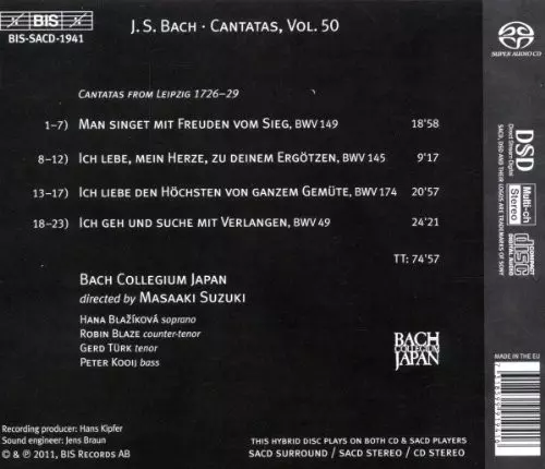 | Cím | Cantatas 50: ►49 ►145 ►149 ►174 ( Man Singet Mit Freuden ) |