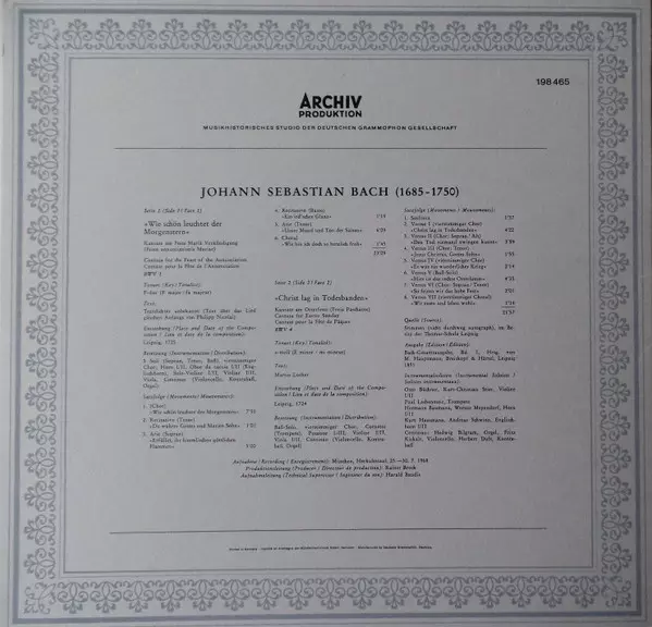 | Művész | Johann Sebastian Bach | Dietrich Fischer-Dieskau | Karl Richter | Münchener Bach-Orchester | Ernst Haefliger | Münchener Bach-Chor | Edith MAthis |