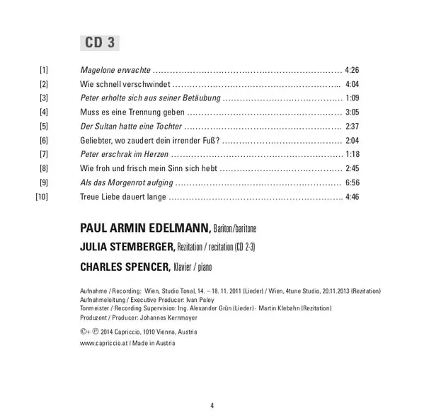 | Művész | Johannes Brahms | Paul Armin Edelmann | Charles Spencer | Julia Stemberger |
