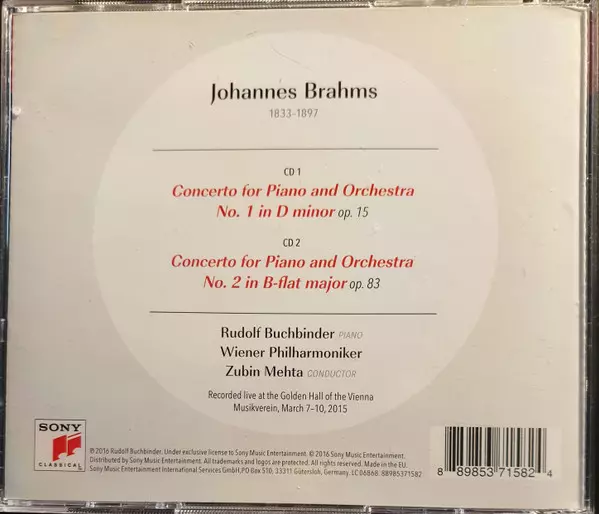 | Művész | Wiener Philharmoniker | Zubin Mehta | Johannes Brahms | Rudolf Buchbinder |