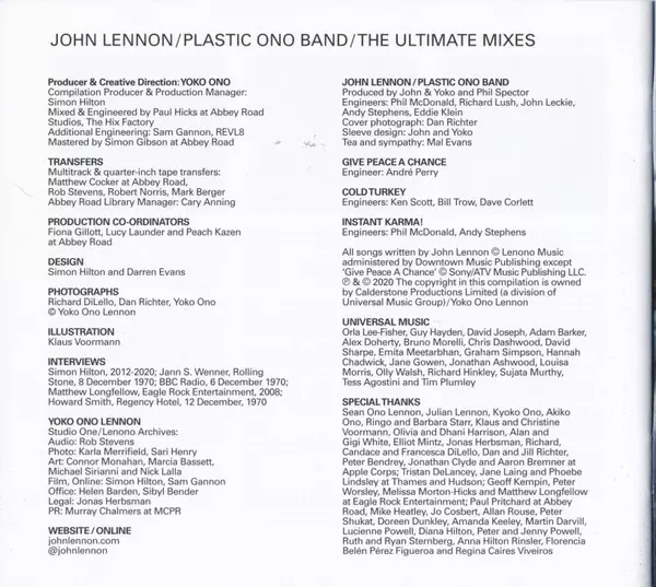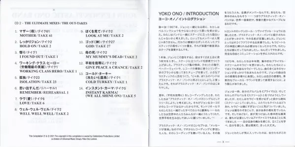 John Lennon: John Lennon / Plastic Ono Band A lemezen lévő változat 2CD/Dobozkészlet - standard kiadás. Ez a különleges kiadás - Japán a kiadó által Apple Records a következőkkel együttműködve Universal Music Group International év 23. április 2021.