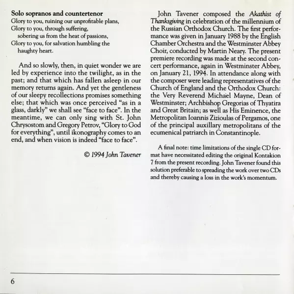 | Művész | John Tavener |