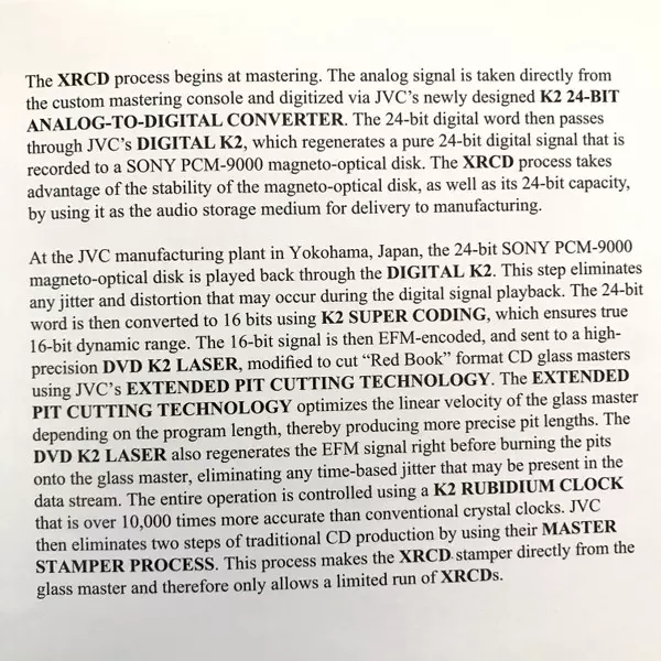 | További információk | XrCD Gatefold Remastered Import US |