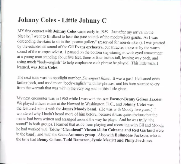 | Művész | Johnny Coles |