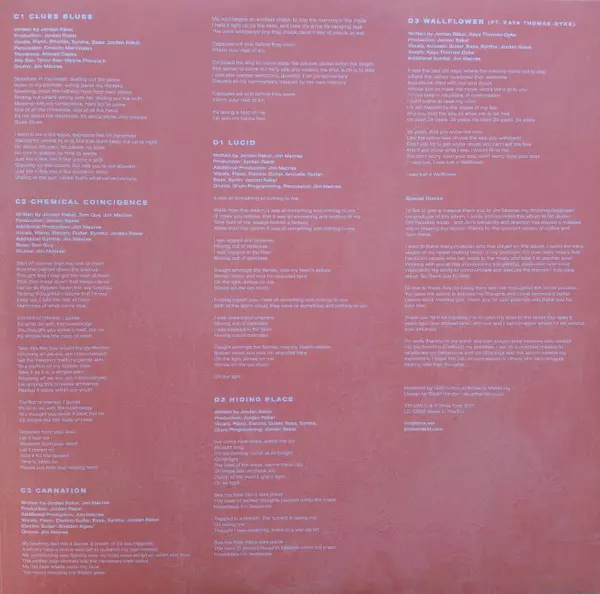 Bass, Written-By Tom Guy (3) | Producer [Additional Production], Synth, Drums, Written-By Jim Macrae (2) | Vocals, Piano, Electric Guitar, Synth [Synths], Written-By Jordan Rakei