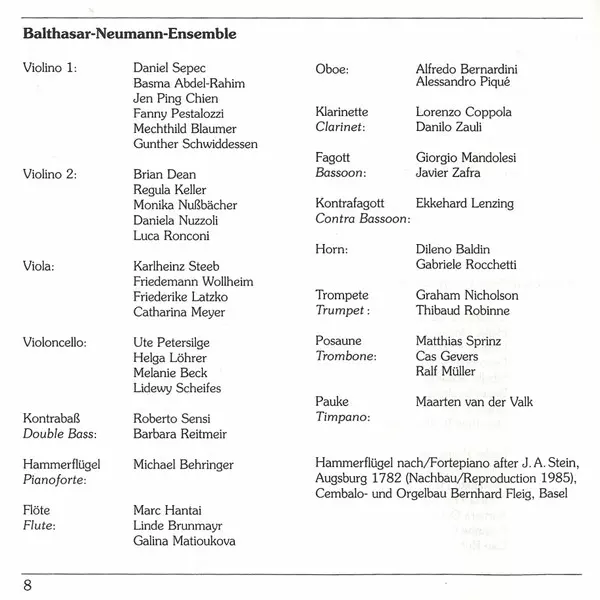 The Balthasar-Neumann-Ensemble is a renowned period-instrument orchestra founded in 1995 by its artistic director, Thomas Hengelbrock. Named after the famous Baroque architect Balthasar Neumann, the ensemble specializes in historically informed performances, aiming to recreate the ...