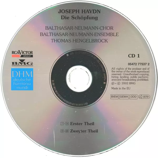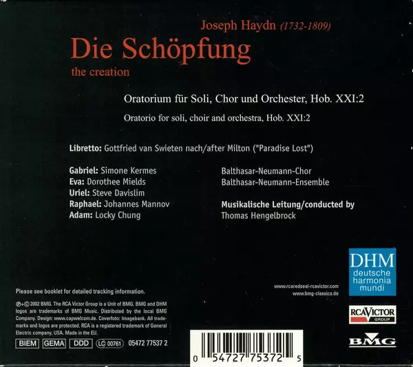 Joseph Haydn: Die Schöpfung = The Creation A lemezen lévő változat 2CD - standard kiadás. Ez a különleges kiadás - Európa a kiadó által deutsche harmonia mundi a következőkkel együttműködve BMG és RCA Victor Group év 20. május 2003. Album műfajok között Klasszikus zene és Oratorio.