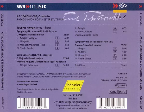 | Művész | Joseph Haydn | Radio-Sinfonieorchester Stuttgart | Carl Schuricht |
