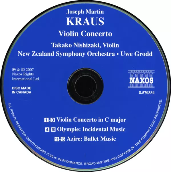 | Művész | Joseph Martin Kraus | Takako Nishizaki | The New Zealand Symphony Orchestra | Uwe Grodd |
