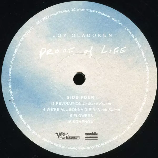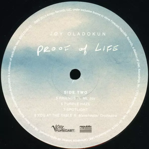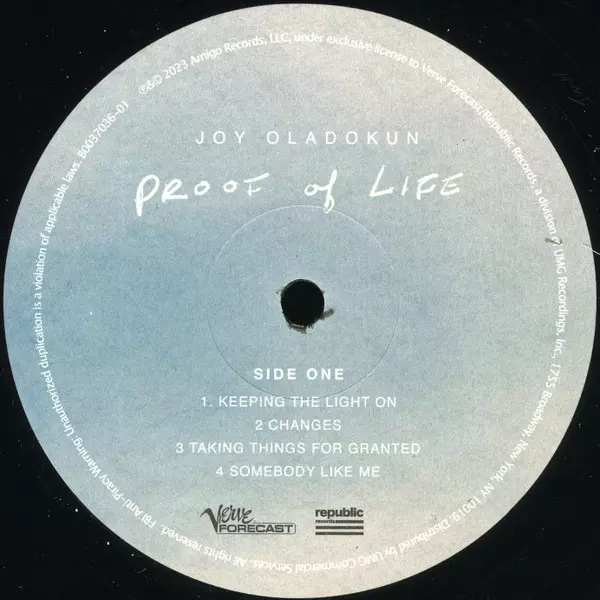 Joy Oladokun: Proof of Life A lemezen lévő változat bakelitlemez 2LP - standard kiadás. Ez a különleges kiadás - USA a kiadó által Verve Forecast a következőkkel együttműködve Republic Records év 28. április 2023. Album műfajok között Rock, Pop és Folk, World, & Country.