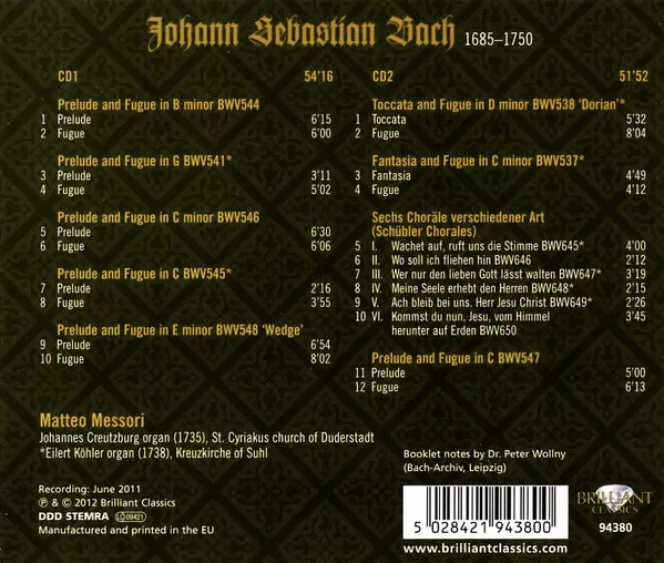 | Művész | Johann Sebastian Bach | Matteo Messori |