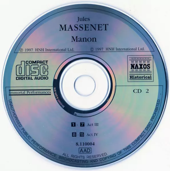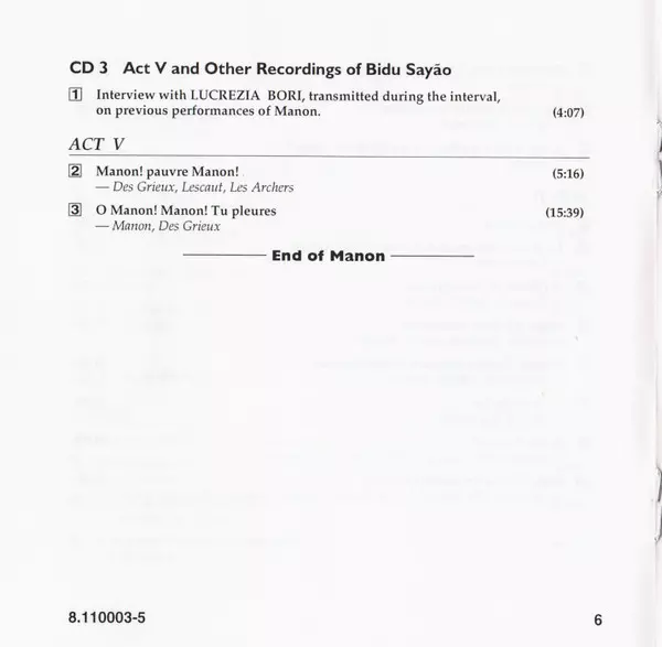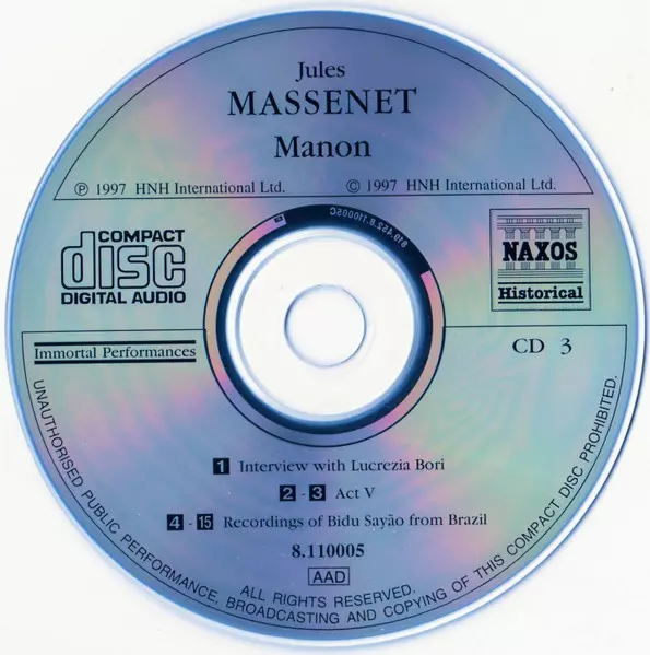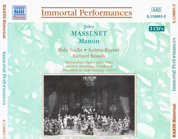 | Művész | The Metropolitan Opera House Orchestra | Metropolitan Opera Chorus | Jules Massenet | Bidú Sayão | Richard Bonelli | Maurice Abravanel | Sydney Rayner |