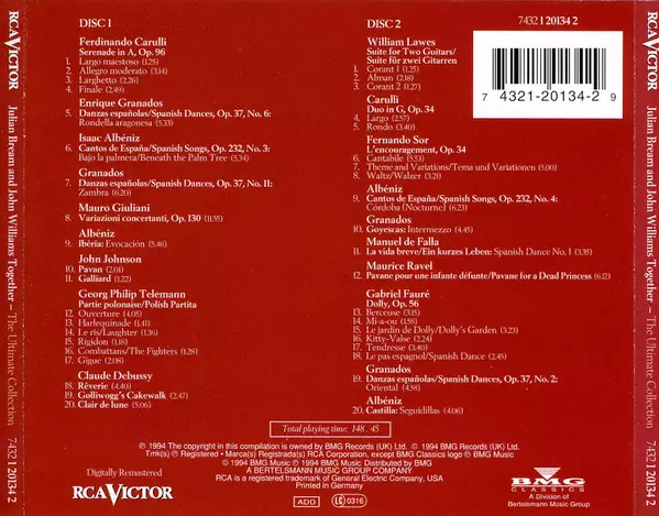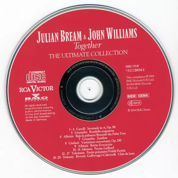 John Williams: Together (The Ultimate Collection) A lemezen lévő változat 2CD - felújított kiadás. Ez a különleges kiadás - UK a kiadó által RCA Victor a következőkkel együttműködve BMG Classics év 21. május 1994. Album műfajok között Klasszikus zene, Folk, World, & Country, Barokk zene, Modernizmus, Folk, Románcok, Impressionistic és Renaissance.