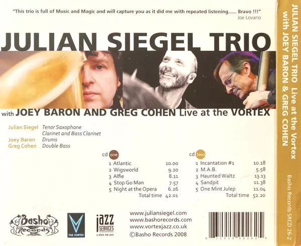 | Művész | Joey Baron | Greg Cohen | Julian Siegel Trio |