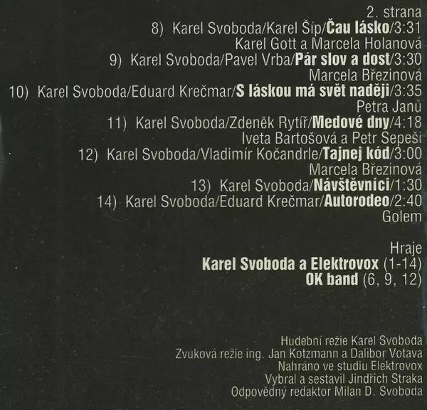 | Lyrics By Vladimír Kočandrle | Music By Karel Svoboda | Performer [Hraje] OK Band | |||