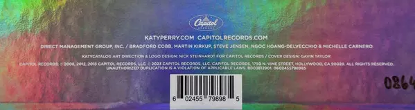 Katy Perry: Katy Catalog LTD | NUM | CLR | DLX A lemezen lévő változat bakelitlemez 5LP/SP/Dobozkészlet - korlátozott példányszámban egyenként számozott színes 45 RPM deluxe kiadás. Ez a különleges kiadás - Világszerte a kiadó által Capitol Records év 27. október 2023. Album műfajok között Rock, Pop, Elektronikus zene, Hip Hop, Ballada, Pop Rock, Electro, Synth-Pop, Dance-pop, Power Pop, Pop-Rap, Soft Rock, Bubblegum és Europop.