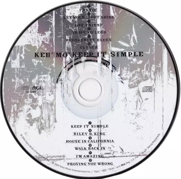 Keb' Mo': Keep It Simple A lemezen lévő változat CD - standard kiadás. Ez a különleges kiadás - USA a kiadó által Epic a következőkkel együttműködve Okeh év 10. február 2004.