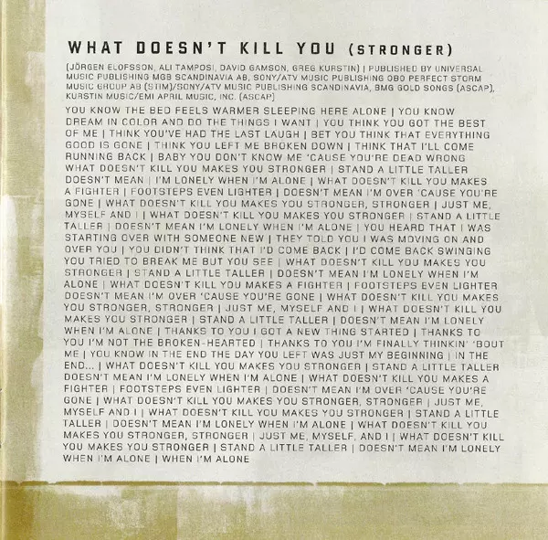 | 2 | Kelly Clarkson: What Doesn't Kill You (Stronger) | 3:41 min | |