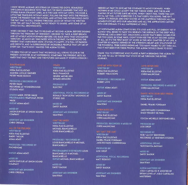 Kiesza: Crave A lemezen lévő változat CD - standard kiadás. Ez a különleges kiadás a kiadó által Zebra Spirit Tribe Ltd. év 14. augusztus 2020. Album műfajok között Pop, Elektronikus zene, House és Dance-pop.