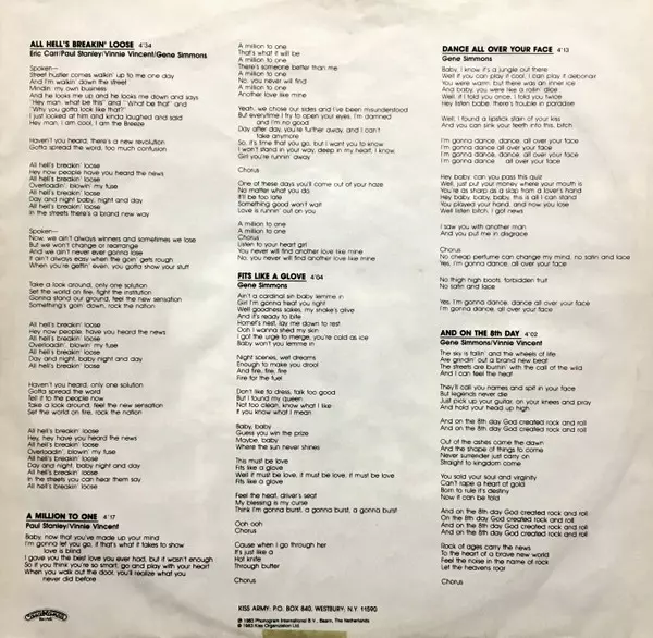 The album Lick It Up, released in 1983, was the first Kiss album to feature new singer Vinnie Vincent and new drummer Eric Carr. The album was commercially successful and reached number 11 on the Billboard 200 chart. The first single from the album, "Lick It Up", reached number one on the Billboard Mainstream Rock Tracks chart.
