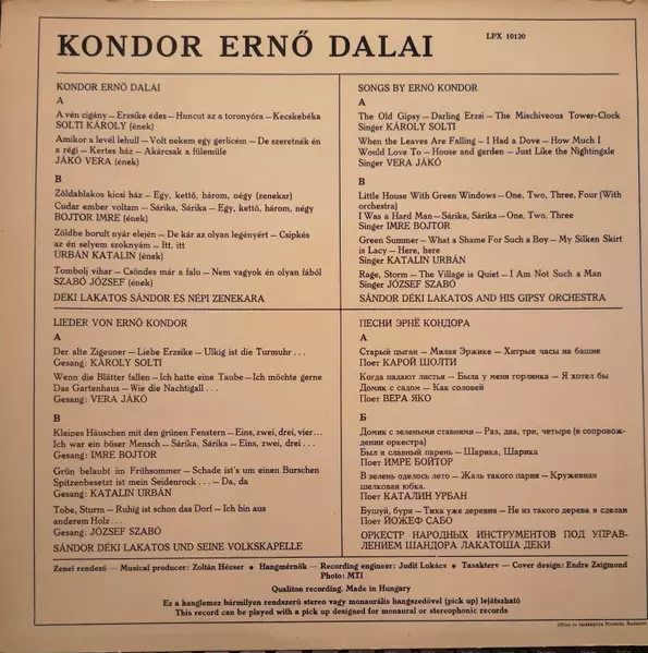 | Cím | Hungarian Songs - Kondor Ernő Dalai |