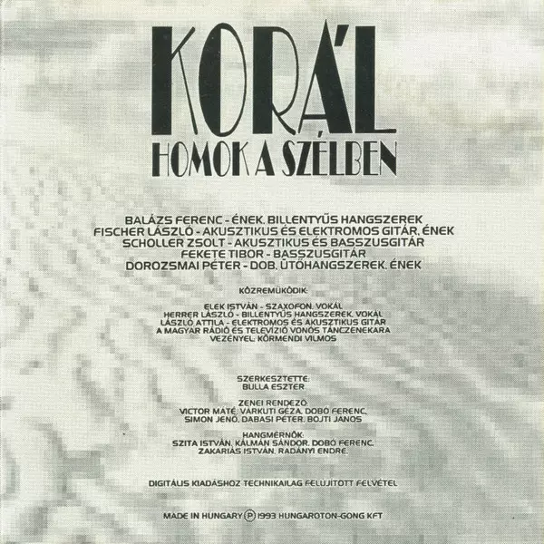 Korál: Homok A Szélben - Válogatás A lemezen lévő változat CD - felújított kiadás. Ez a különleges kiadás - Magyarország a kiadó által Gong év 12. július 1993. Album műfajok között Rock, Pop, Pop Rock és Hard Rock.
