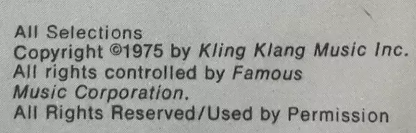 | További információk | 1976 Orange Label Yellow Vinyl |