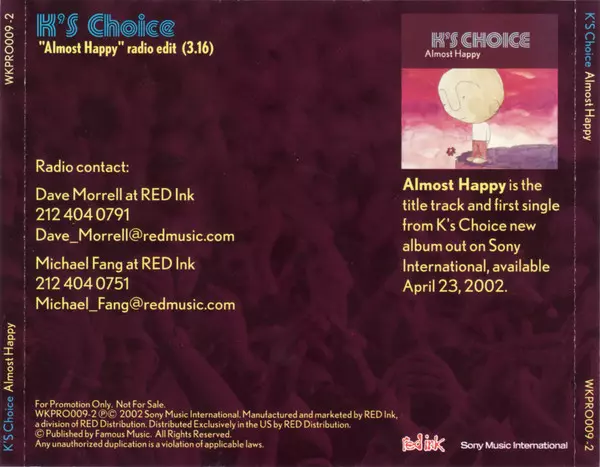 | További információk | Promo Single Import USA Sony/Red Ink |