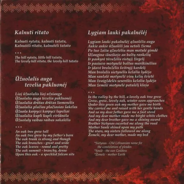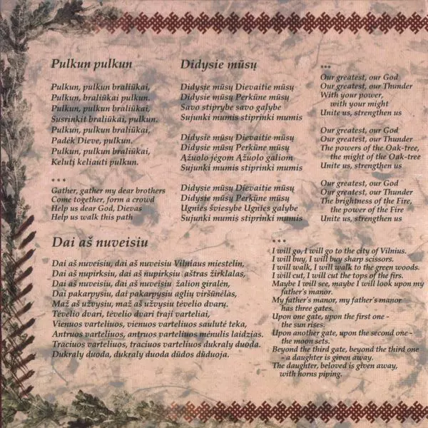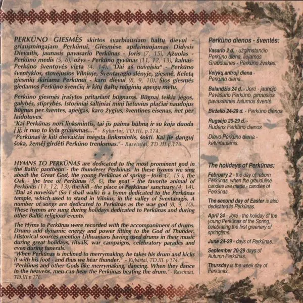 | Cím | Perkūno Giesmės (Hymns to Perkūnas The Thundergod) |