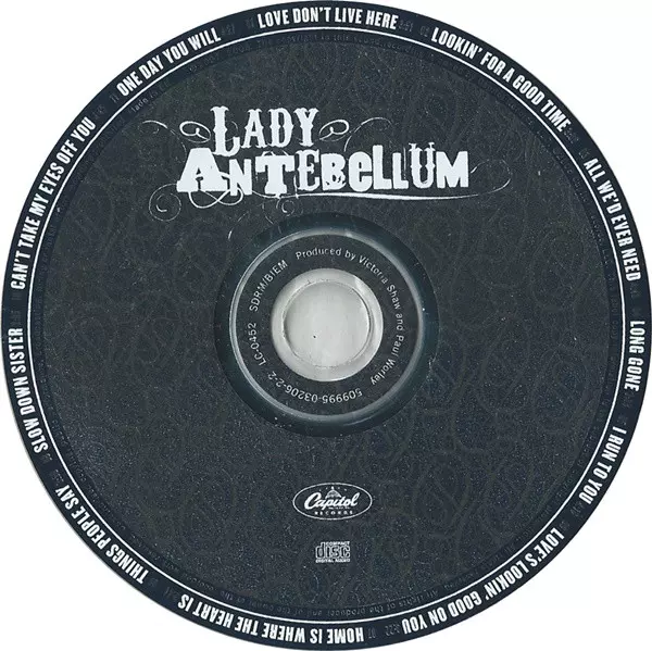 Lady Antebellum: Lady Antebellum A lemezen lévő változat CD - standard kiadás. Ez a különleges kiadás - Európa a kiadó által Capitol Records a következőkkel együttműködve EMI év 1. április 2013. Album műfajok között Rock, Folk, World, & Country és Country-Rock.