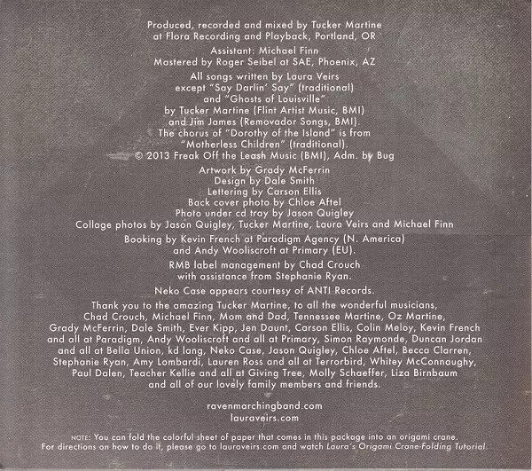 Bass Karl Blau | Cello Nathaniel Smith (3) | Drums Brian Blade | Electric Guitar Timothy Young | Pedal Steel Guitar Carl Broemel | Percussion Tucker Martine | Piano, Organ [Pump Organ] Rob Burger | Viola L. Alex Guy | Vocals, Acoustic Guitar Laura Veirs